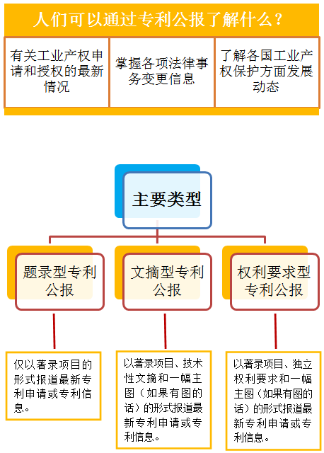 专利公报是各国专利机构报导最新发明创造专利申请的公开、公告和专利授权情况以及专利局业务活动和专利著录事项变更等信息的定期连续出版物。