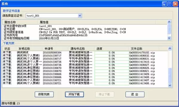 选中需要下载的通知书,点击[开始下载],即开始下载相应的通知书