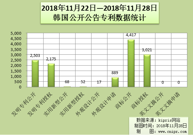 2018年11月22日—2018年11月28日韩国公开公告专利数据统计