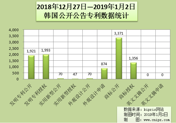 2018年12月27日—2019年1月2日韩国公开公告专利数据统计