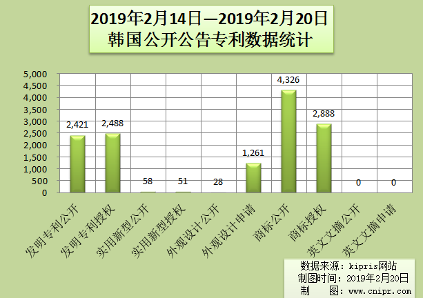 2019年2月14日—2019年2月20日韩国公开公告专利数据统计