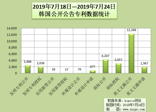 2019年7月18日—2019年7月24日韩国公开公告专利数据统计