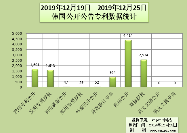 2019年12月19日—2019年12月25日韩国公开公告专利数据统计