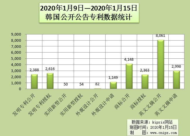 2020年1月9日—2020年1月15日韩国公开公告专利数据统计