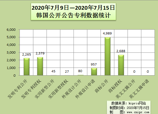 2020年7月9日—2020年7月15日韩国公开公告专利数据统计