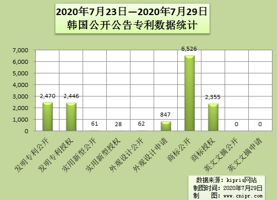 2020年7月23日—2020年7月29日韩国公开公告专利数据统计